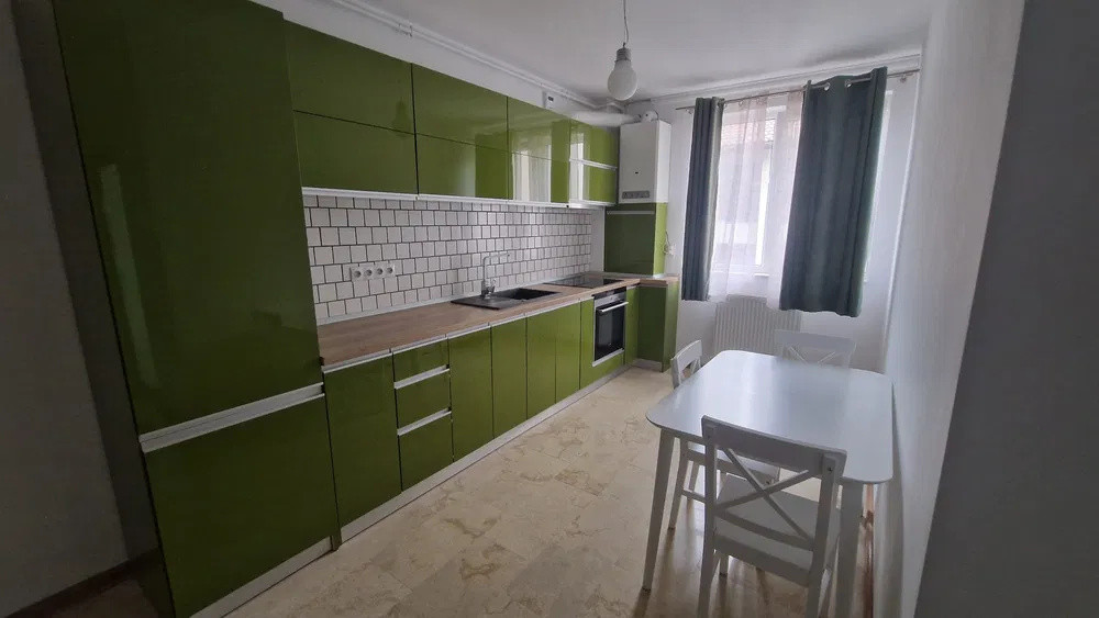 Finisajele sunt de înaltă calitate, incluzând parchet din lemn masiv de stejar, placaje din marmură și uși din aluminiu, ce conferă un aspect modern și elegant. Apartamentul este dotat cu centrală termică proprie, asigurând un control optim al confortului termic pe tot parcursul anului.