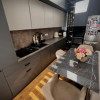 Bucătărie complet echipată: cuptor, microunde, plită, mașină de spălat vase, combină frigorifică.