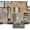 Apartamentul are o suprafață utilă de 64.24 și un balcon de 4,2 mp. Este situat la etajul 3 al unui imobil nou și se predă semifinisat. Compartimentarea este practică și cuprinde un hol, două băi, o bucătărie open space cu living, două dormitoare și un balcon.