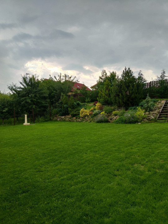 - Curte amenajata cu vegetatie matura variata (arbori ornamentali si conifere), oferind intimitate si un ambient placut pe tot parcursul anului