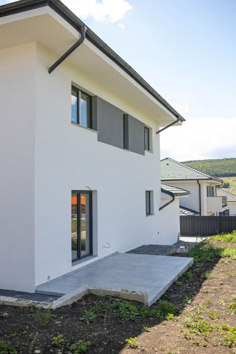 Suprafața casei este de 119 mp utili + garaj de 27 mp + camera tehnica situată în garaj . Terenul aferent proprietății masoara 500 mp.