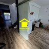 Parter: bucătărie închisă cu ușă de sticlă, living luminos, baie și cameră pentru depozitare.