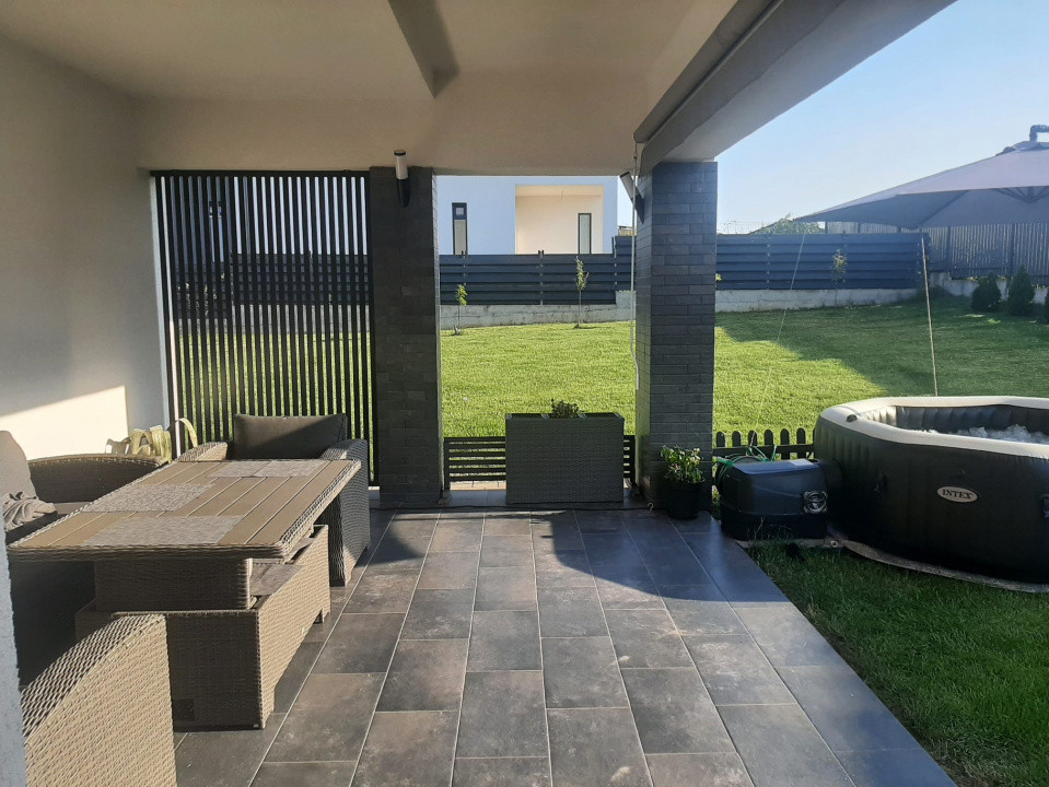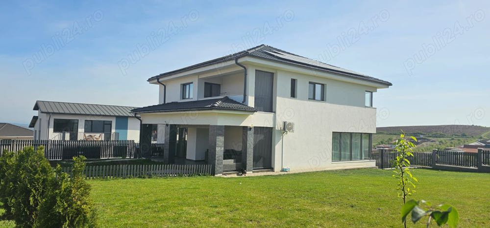 Proprietate modernă, complet mobilată și utilată, cu un grad de independență energetică de aproximativ 85%. Suprafața utilă este de 240 mp, pe un teren de 800 mp, oferind confort și intimitate.