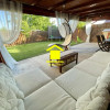 Spațiul exterior este complet amenajat și cuprinde o terasă generoasă, acoperită și electrificată, două locuri de parcare și o căsuță pentru depozitare. Curtea este împrejmuită cu gard de lemn, oferind un cadru plăcut și intim.