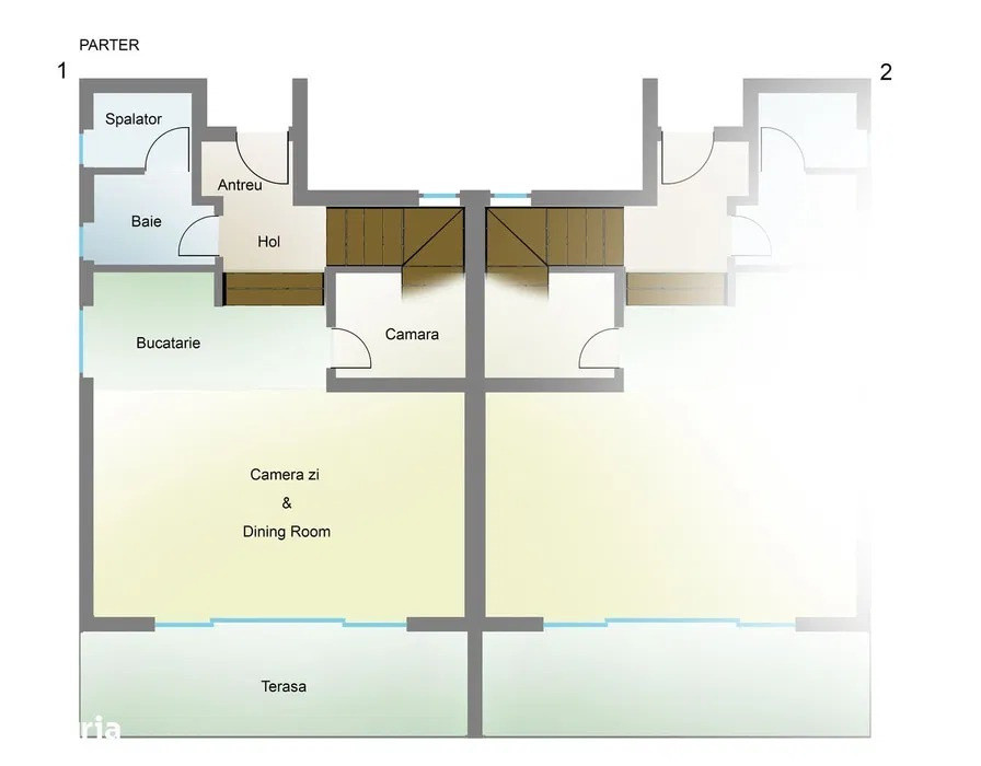 • Parter: living spațios, bucătărie cu acces la terasă, baie, debara, spălătorie, hol