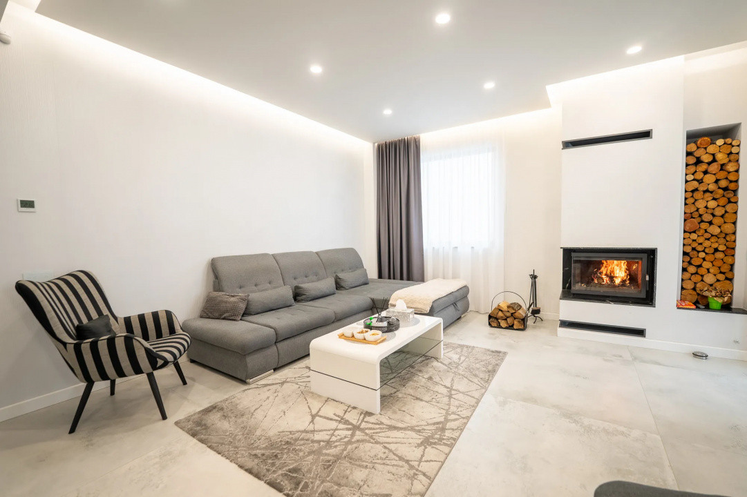 Parter: living spațios și luminos, bucătărie modernă, baie, debara, cameră tehnică și hol generos.