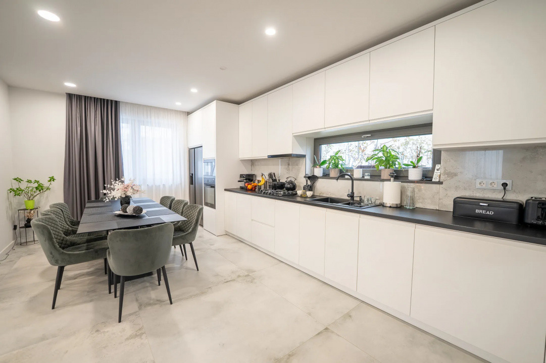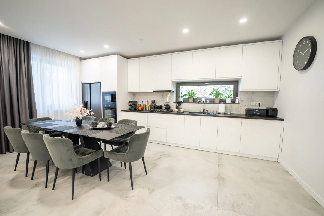 Construită cu materiale premium, proprietatea impresionează prin finisajele atent alese, mobilierul ultra modern și electrocasnicele de top marca Samsung, oferind un standard ridicat de confort și durabilitate.