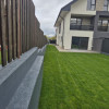 Grădină amenajată cu rulouri de gazon și sistem automat de irigație