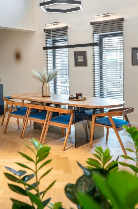 Locuința este mobilată și utilată complet, ready to use, cu finisaje premium și design minimalist, care combină materiale naturale de calitate pentru o atmosferă caldă și confortabilă. Structura casei oferă amplitudine și luminozitate în zonele de zi, iar funcționalitatea și eficiența energetică sunt optimizate pentru confortul întregii familii: