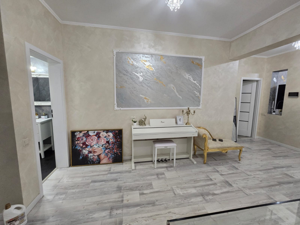 Etajul te va cuceri cu o bucătărie generoasă, complet echipată și mobilată elegant, ce se deschide spre un living luxos, perfect pentru momente de relaxare și socializare. Un birou și o baie amenajată cu stil unic completează acest spațiu rafinat