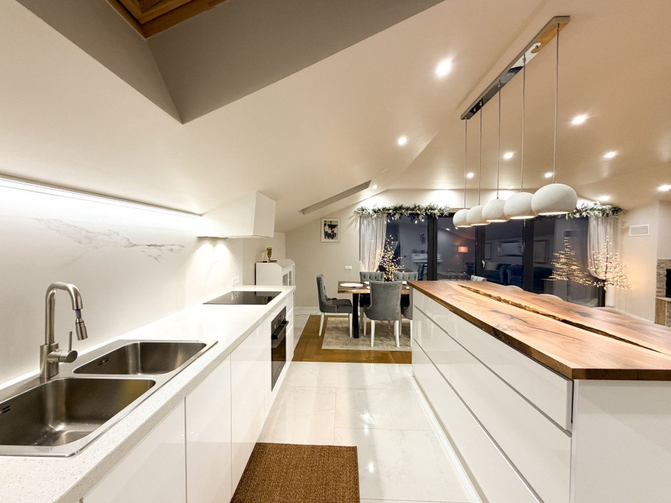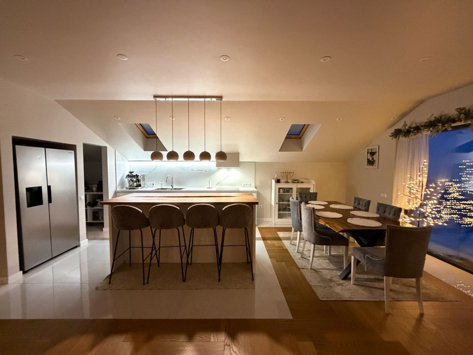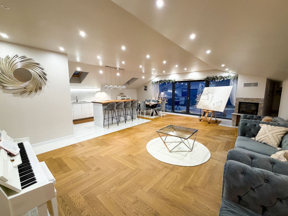 Living Bucătărie OPEN space, cămară, birou, baie și terasa cu panorama.
